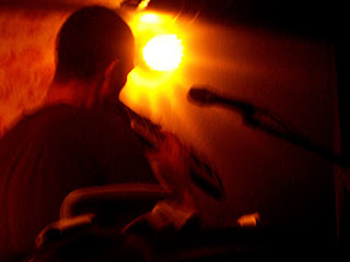 Tuesday October 18 at 6: 00 ι passes through the ‘ Residents’ bar looking to find any known around there. Thanks to my luck ,So I found! . It was a poster with a familiar face, so I thought it was finally just looked a little lower. Mat Elliot in Rezidents bar what the f ***. I made a call and arranged my night-walk tonight. 10 past quarter - I was just there - and as I expected a small people - panic in Rezi .. ! The world was there the bar was loaded .. and I was expecting my friend Dimitri. Who thankfully came. The performance started at 10;15 . At first I hesitated to enter the place because it was too crowded to the door…, but then I realized this was not something that it could be lost. Besides, it was the first time that I ll face these dark tunes from so close. We sat right by the attic next to the vinyls which seemed to delight our eyes .. ! Gathered and left in Mat Elliot’s hands on a beautiful journey through the music. Even I wonder how many stompboxes i found in a room 1 m2 . The guy is simply unbelievable recites his own dark tales and you just look in vain. As he explained to us late he was not expecting in a small space like that to be so calm and waited for the opposite to happen . The silence strengthens from song to song ,it was so intoxicating melodies that came from so many different instruments he used.